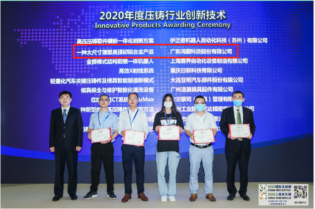 On July 15, the 15th International Die-casting Expo and 2020 Shanghai Nonferrous Alloy and Special Foundry Exhibition was held in Shanghai New International Expo Center. A large-size thin-wall high-strength and high-toughness aluminum alloy product of Hongtu Technology won the honorary title of 2020 Die-casting Industry Innovation Technology. Doctor Yan Feng, who works in Hongtu Technology Die-casting (Headquarters) Engineering Technology Center, was invited to attend the meeting as one of the experts of the die casting industry and delivered a scientific and technological report titled "Annual Innovative Products and Technology-GZGX01" and "Intelligent Manufacturing of lightweight Components of New Energy Vehicles" on behalf of the company at the Automotive Lightweight Development Forum, which was held at the same time as the meeting. The above mentioned report was highly praised by the experts present at the meeting.