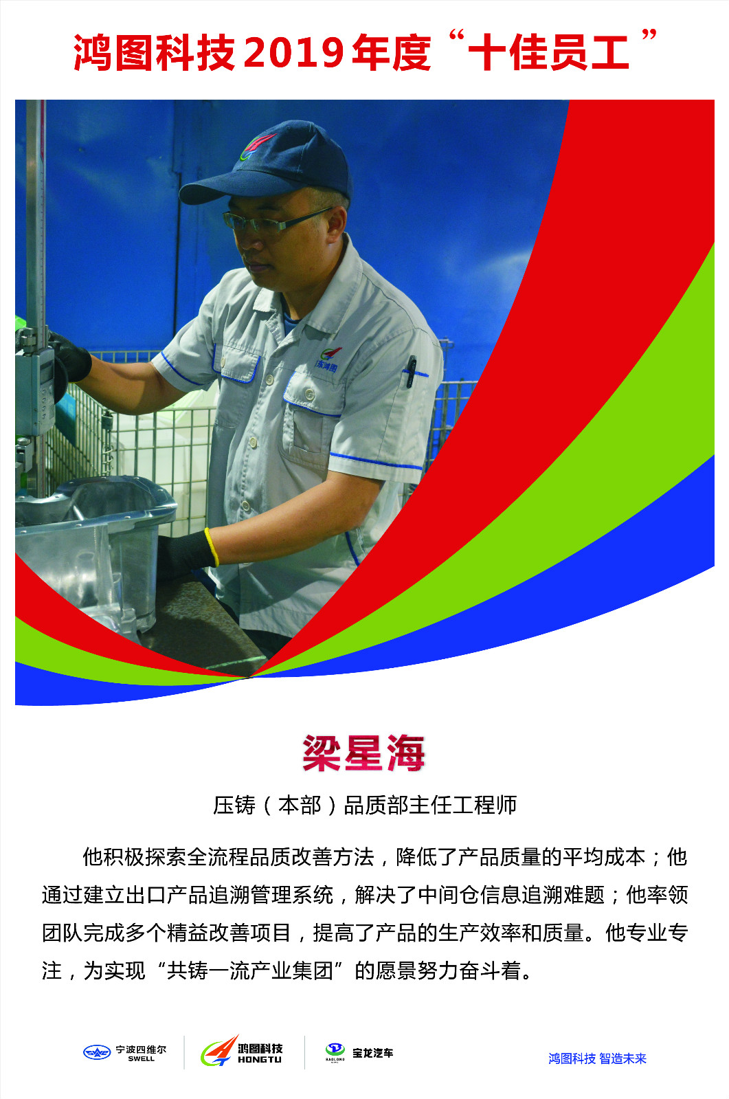 作為壓鑄(本部)品質部主任工程師,梁星海現在主要負責FCA及廣汽菲克項目品質管理工作。入職以來,他曾擔任過品質工程師、品質組組長、主任工程師等職務。工作中,他努力為客戶創造有品質、有價值的產品和服務,獲得了多次嘉獎。