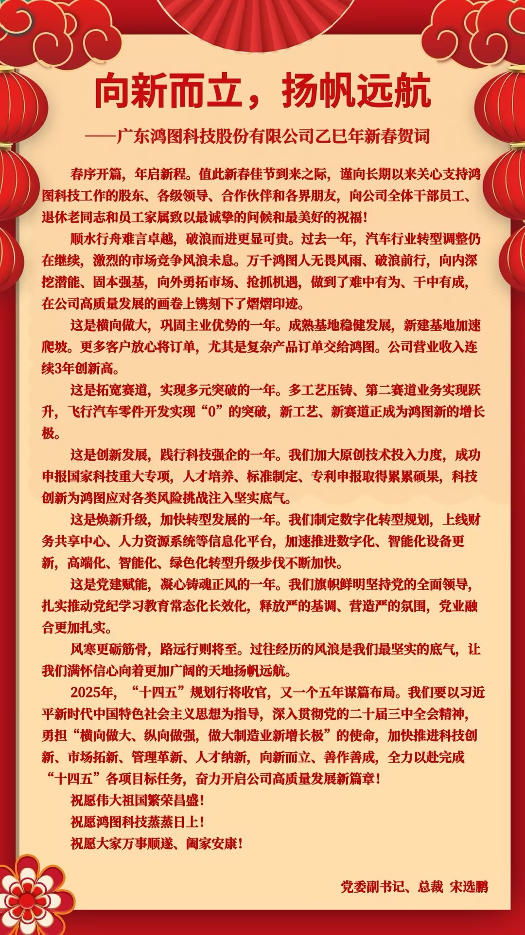 向新而立,揚(yáng)帆遠(yuǎn)航 ——廣東MK體育科技股份有限公司乙巳年新春賀詞