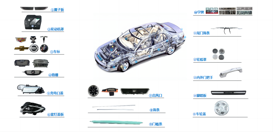 公司不斷優化產品結構和市場結構,目前汽車標牌和散熱器格柵在國內乘用車市場處于行業領先地位,是通用、福特、菲亞特-克萊斯勒、大眾、奔馳、本田、現代、豐田、日產、吉利、長城、奇瑞等國內外知名汽車廠商的一級配套供應商。