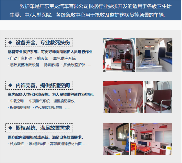 廣東寶龍汽車有限公司充分發揮在汽車行業20多年的改裝經驗,積極與相關合作伙伴共同研究技術問題解決方案,為解決新型救護車能否在救護防疫中快速啟用這個難題,制定了全新的改裝方案。